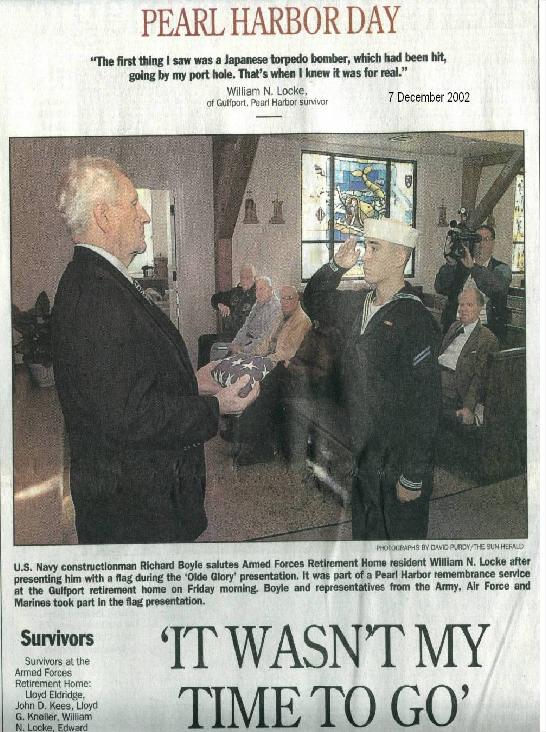 Ned Locke in 2002. He was on the USS Pennsylvania in Pearl Harbor on 7 December 1941 when the ship was attacked and severely damaged by the Japanese raiders Ned Locke still philosophical and very active in 2002