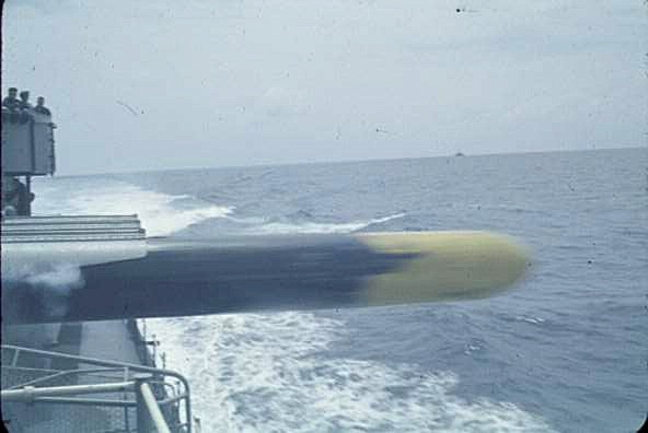 Shipmates' Memories Richard E. Barker ET2 (RIP Alvord, TX) Remember how we got mail when we were operating with carriers? You think that gal in the AOL ad is excited when she says "I've got mail!" - you should see a sailor! A great shot of a "fish" leaving the torpedo tubes! Looks like US Naval Station Long Beach with USS Preston (DD-795) tied alongside and the hospital ship USS Hope (AH-7) in far background. Not sure where there was but might have bin at Amami Oshima, Ryukyu Islands, during our assistance mission there.
