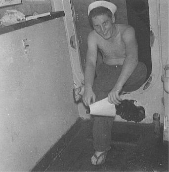 Frank at working station and on guard duty in Kaohsiung, Taiwan Frank's 21st Birthday in Olangapo with unknown friend and Tommy Clemmons Frank and Harold Elkins (BT2) in Long Beach in 1957 |