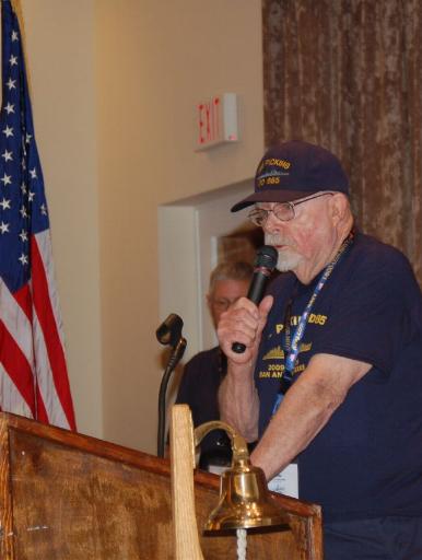 We were welcomed by Larry Werts of the Museum. Shipmates Ed Gavin, Chuck Hendryx, and Doyt Sheets (not shown), gave their history of our ship in World War II, the Korean Conflict, and the Vietnam War, respectively.