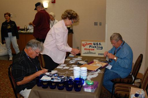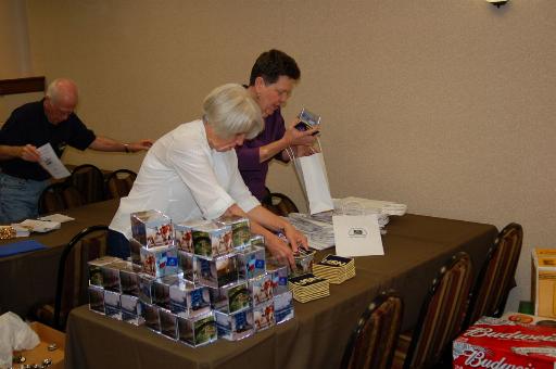 Setting the room up - Dick Fust, Linda Bolf, Cynthia Daniels (l); Tony Celucci, Flo Cellucci, Norm Bolf (r)