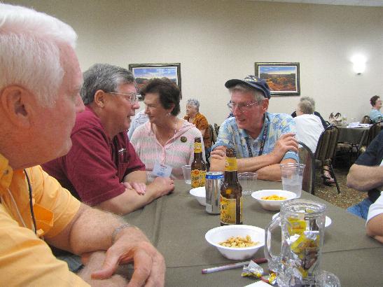 Bert and Fran Radebaugh (l); Joyce Wyatt, Catherine Connelley, Clyde Connolley, Dick Wyatt (r)