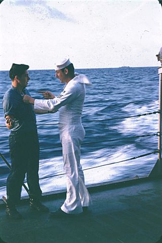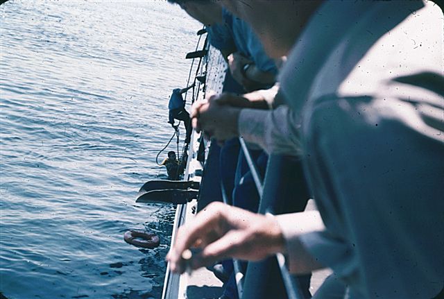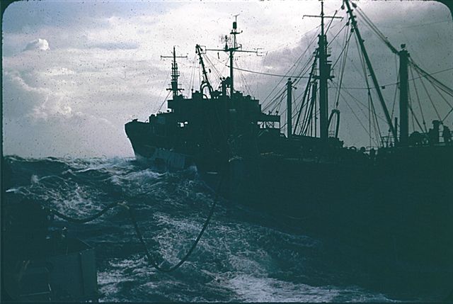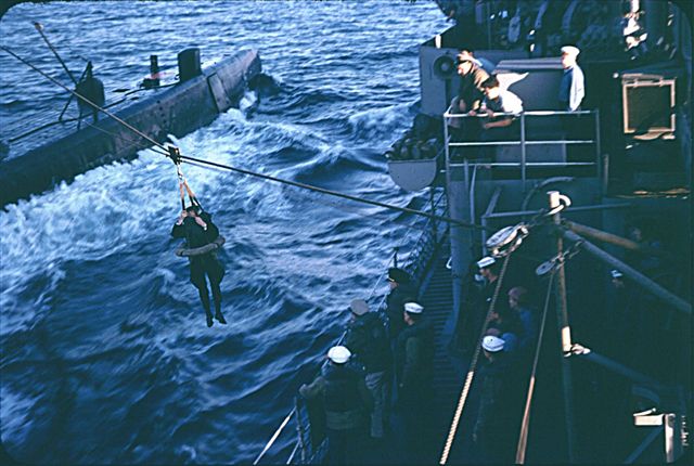 Harry Dalton BM1 rescuing downed pilot Refueling off USS Chipola (AO-63)